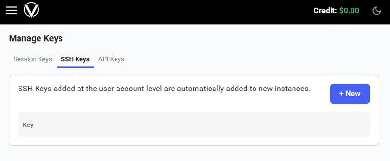 • Add the public key to your vast account and any running instances