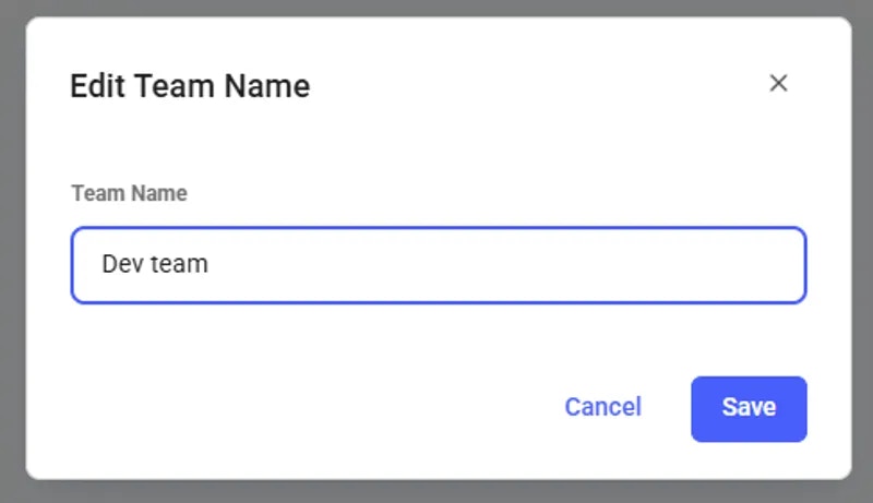 The ‘Edit team name’ option opens a pop-up that allows you to enter and save a new team name.